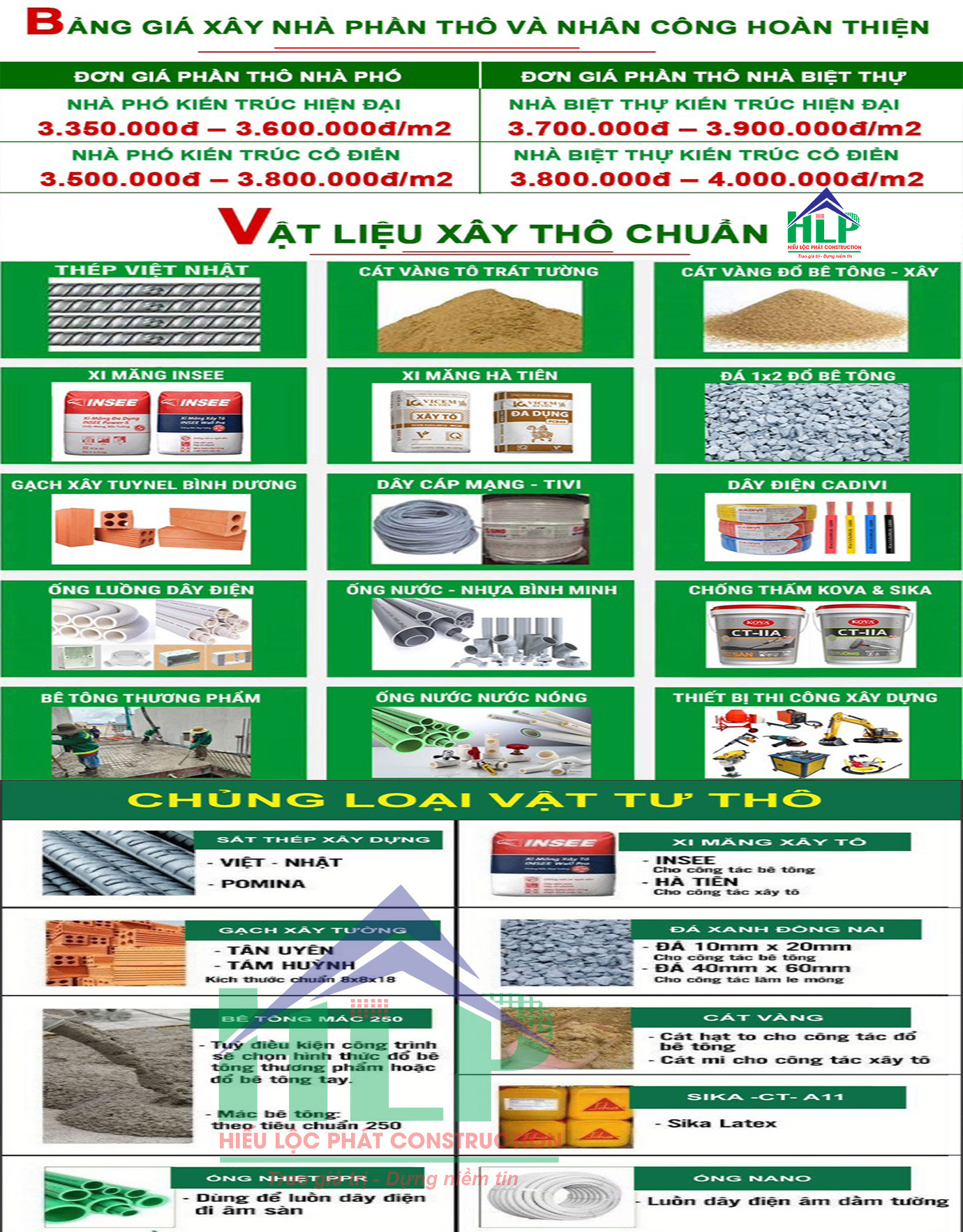 CÔNG TY TNHH KIẾN TRÚC THIẾT KẾ ĐẦU TƯ XÂY DỰNG HIẾU LỘC PHÁT XIN KÍNH CHÀO QUÝ VỊ. ĐƠN GIÁ XÂY DỰNG PHẦN THÔ CHUẨN: 3.200.000đ-3.300.000đ/m2. ĐƠN  GIÁ XÂY DỰNG TRỌN GÓI TỪ 4.750.000đ – 6.700.000 Đ/M2.